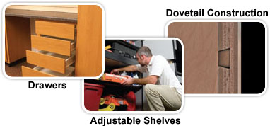 The Slide-Lok Classic Series is available in four durable thermofused finishes with a natural wood grain look. Choose from a host of options such as Slat-Wall and Slat-Wall accessories, flooring and other garage accessories. New options are also available such as a heavy duty metal storage chest and new extruded aluminum handles. Ask your authorized Slide-Lok dealer for more information.
